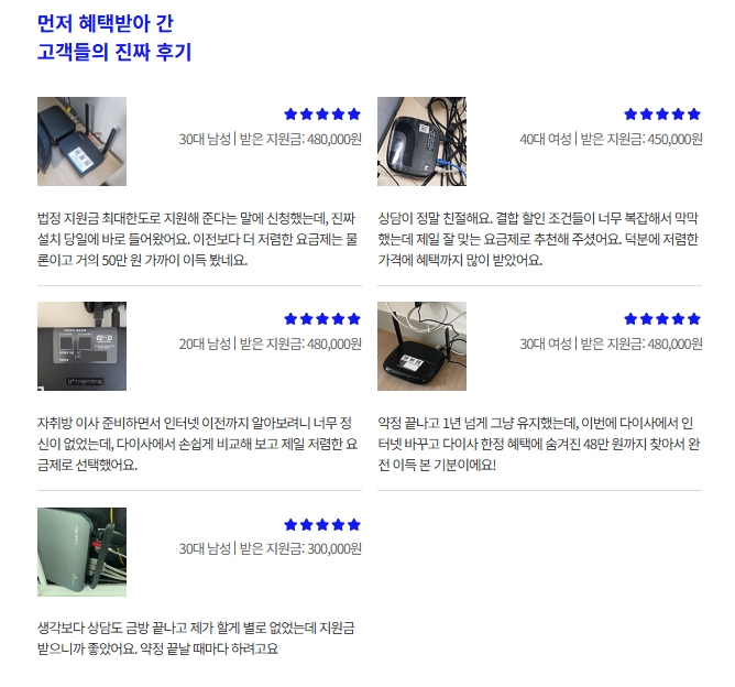 - 신규 가입자 대상 설치비 면제 이벤트 자주 진행됨